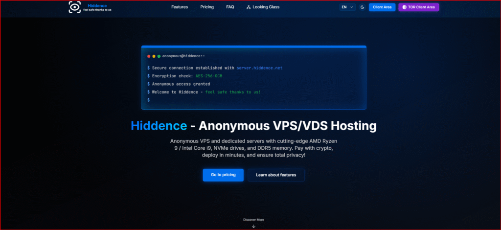 Hiddence.net takes a fundamentally different approach to hosting. Their entire infrastructure revolves around complete anonymity, specifically because privacy has become an essential requirement in today’s digital landscape. This isn’t just a marketing decision—it’s a pure commitment to user confidentiality.
