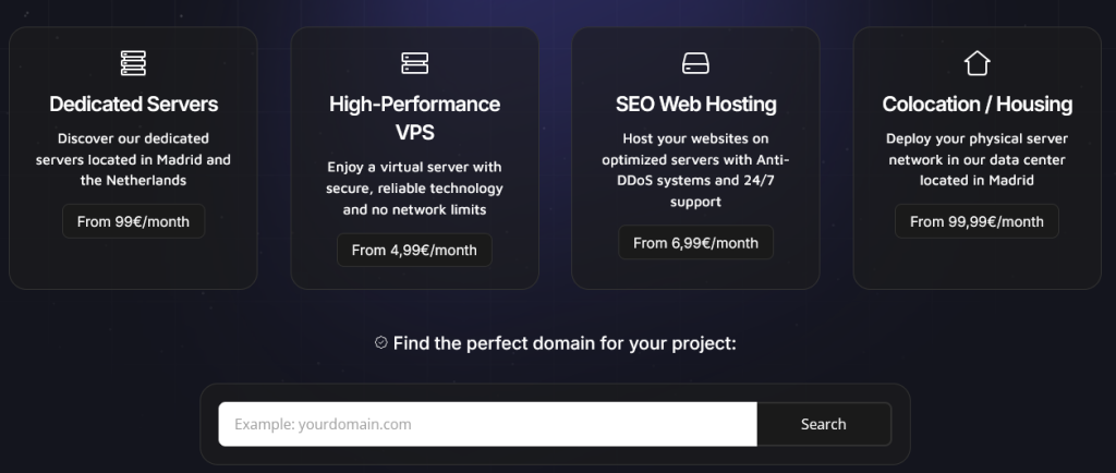 | Hostealo stands out with their specific focus on the Spanish market, offering Madrid-based infrastructure that guarantees low latency for Spanish users. We provide enterprise-grade Anti-DDoS protection included, latest Intel Xeon and AMD Ryzen processors, ultra-fast NVMe storage, and 24-hour Spanish technical support. Our competitive pricing and own infrastructure (ASN 215691) position us as the best option for businesses needing reliable hosting in Spain. | |