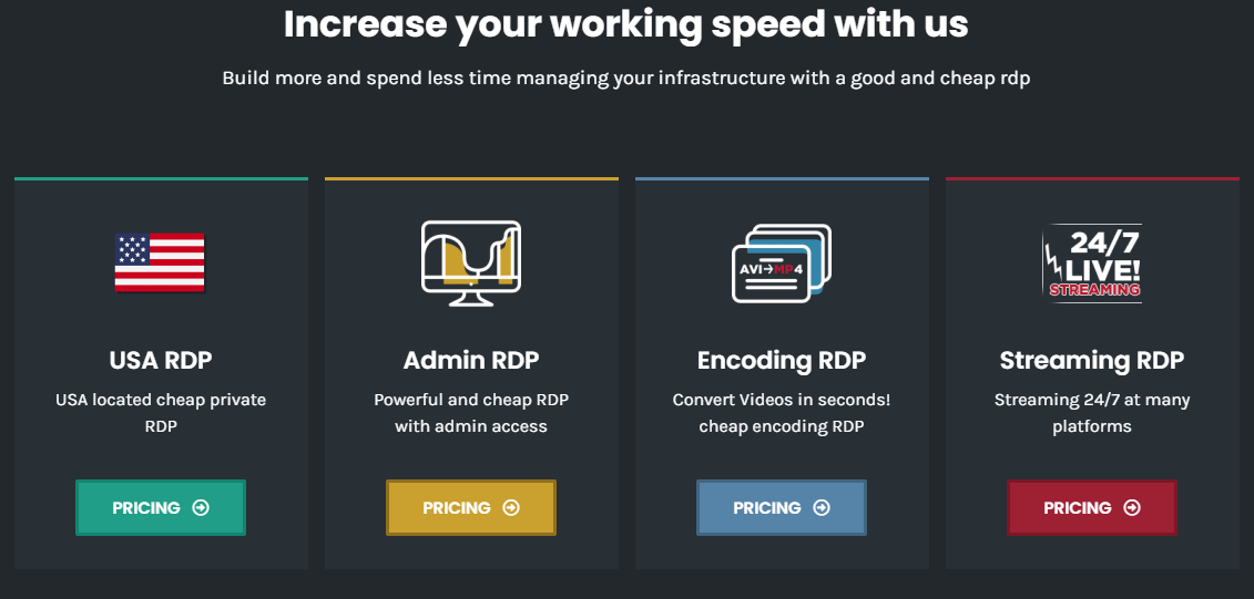 Beyond traditional Windows RDP services, RDPWindows offers specialized solutions for demanding applications. Their GPU RDP servers feature GeForce GTX 1080 graphics cards, while Encoding RDP plans utilize powerful AMD Ryzen processors for media conversion tasks.